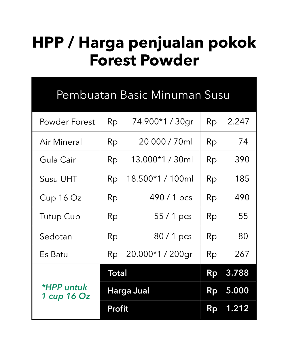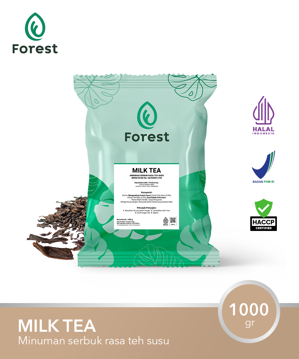 Bubuk minuman FOREST Beverage Solutions ( Bubble Drink ) berkualitas tinggi. Berat bersih 1000 gram. Isi: Non dairy creamer, flavour, dan TANPA GULA. Sehingga dengan jumlah gramasi yang sama, bubuk minuman produk kami menghasilkan minuman yang lebih kaya, lebih bold, lebih creamy, dan pastinya lebih nikmat.