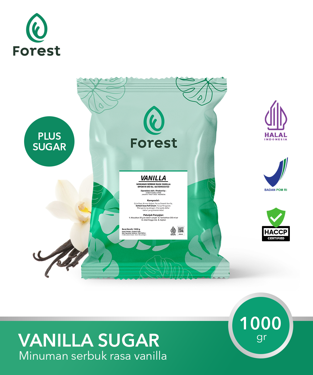 Bubuk Minuman Forest Beverage Solutions rasa VANILLA (MENGANDUNG GULA ) yang wangi dan creamy. Flavour hint: Rasa dan aroma Vanilla Susu yang milky & creamy